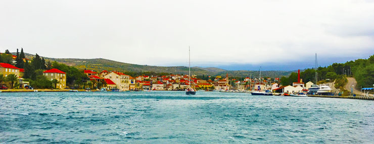 We sailed 45 nautical miles under a 25-knot wind and bright sunshine to Vis Town on Wednesday. It’s hard to describe the magic of this charming port and wonderful light. When we were there, the wharf was filled with boats preparing to start the Adriatic race. We watched them set off and headed north to Necujam cove on Solta island. We didn’t find much of interest there so changed our destination to Split for some exploring.