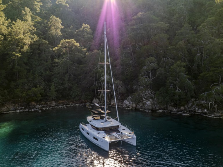 Incredible catamaran for rent in Fethiye. This Lagoon 46 from 2024 is an ideal boat for a vacation with family or friends. The catamaran is 14 meters in length with 114 horsepower. The 4 cabins can accommodate 9 passengers when cruising. This Lagoon 46 is equipped with 4 heads with a shower. This boat is equipped with a Full batten mainsail and a Furling genoa. It has the following equipment: Auto-pilot, Outboard engine, Water maker, Electric winch, Outdoor fridge. Booking requests and quotes are handled directly by SamBoat. You will get the best prices through the platform.