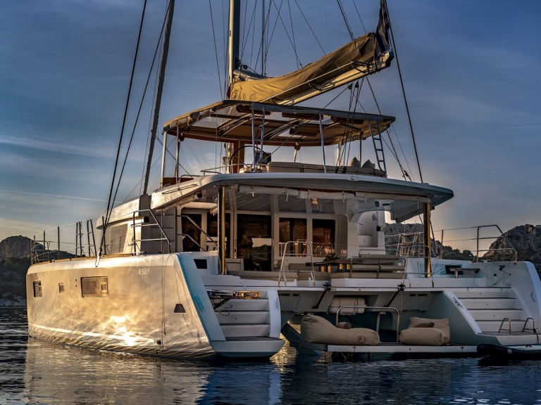 Catamaran for rent in Mykonos (Île). This Lagoon 52 F built in 2018 offers an excellent quality for its price for a cruise of a few days or even a few weeks.